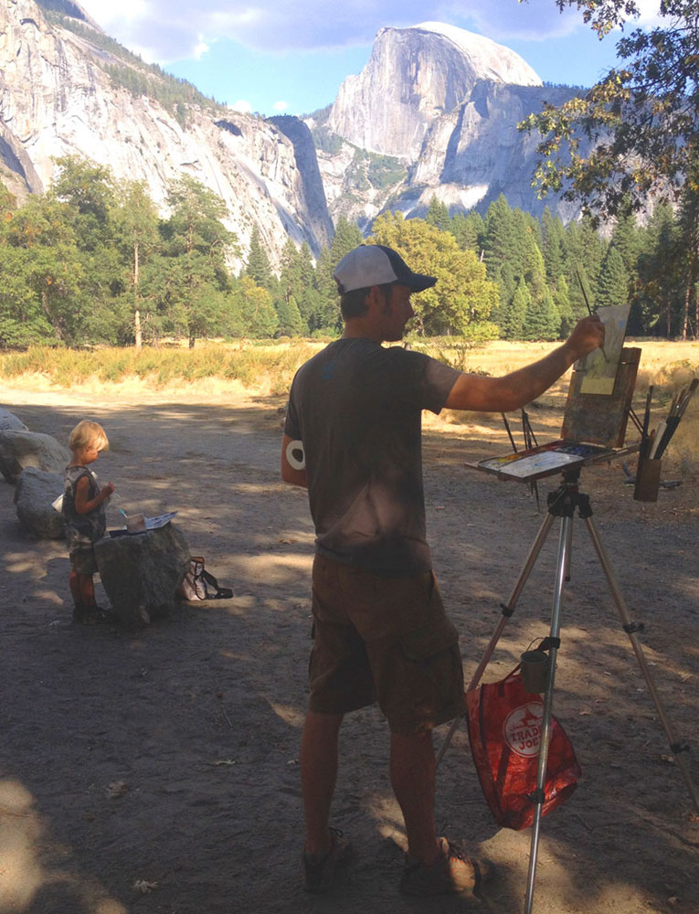 On our way home, the family and I headed to Yosemite National Park and spent a couple of nights there. The scenery is so spectacular! I enjoyed the chance to paint some of it with little Ian painting along with me.