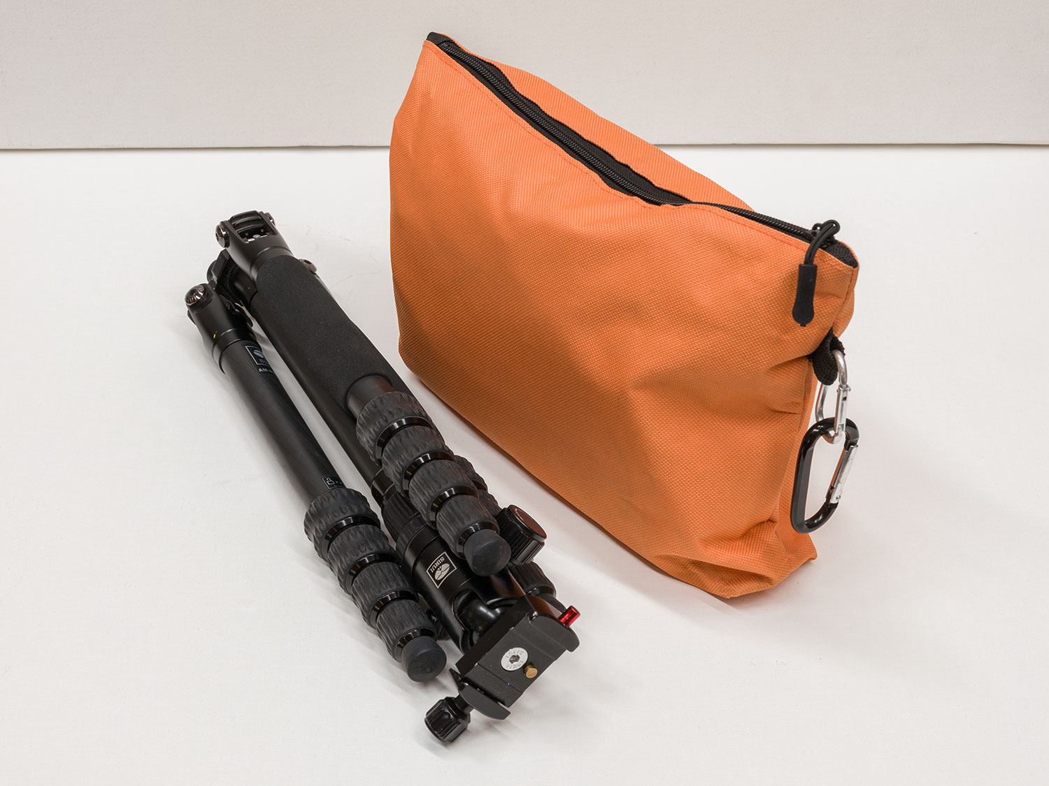 - Sirui AM-025K carbon fiber tripod (weight: 2 lbs., closed length: 12.5”)